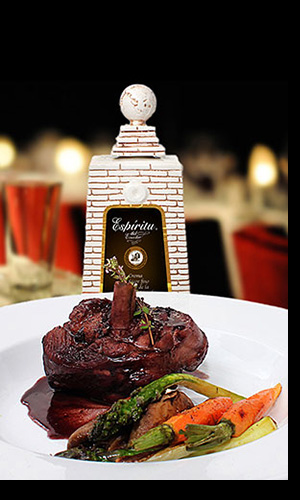 • 1 kilo de piernas de pavo • 500 ml Vino tinto • 200 gr de zanahoria • 100 gr de apio • 200 gr de cebolla perla2 litros de caldo de pollo50 ml de Espíritu del Ecuador20 gr de mantequilla20 gr de maicenaPimienta entera, laurel