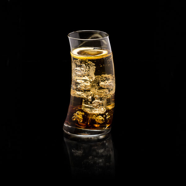 Llenar un vaso jaibolero con cubitos de hielo. Llenar con agua mineral y añadir las bebidas. adornar con una cáscara de limón.
